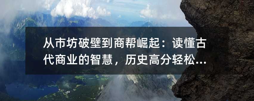 古代商业的发展是中国人用智慧破解经济困局的生动实践。从西汉的"围墙"到宋朝的"破壁",从交子的诞生到商帮的崛起,每一步都闪耀着创新的光芒。当你把知识点放进历史的脉络中,考试不再是负担,而是对智慧的致敬。