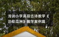 小学高段古诗教学《泊船瓜洲》的教学案例。通过引导学生回忆父母出门打工的情景,调动思念亲人的情感,再切入到古诗学习。教师鼓励学生用自己喜欢的方式学习古诗,学生思维活跃,能用多种方式如画图、写读后感等来学习。教学中注重引导学生自我寻找学习方法,培养学生的
