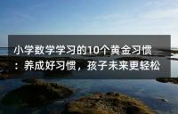 小学数学学习的十大黄金习惯,包括自觉预习、仔细观察、认真听讲和乐于交流等。这些习惯能够帮助孩子养成良好的数学学习习惯,提高数学学习能力,从而在未来的学习中更加轻